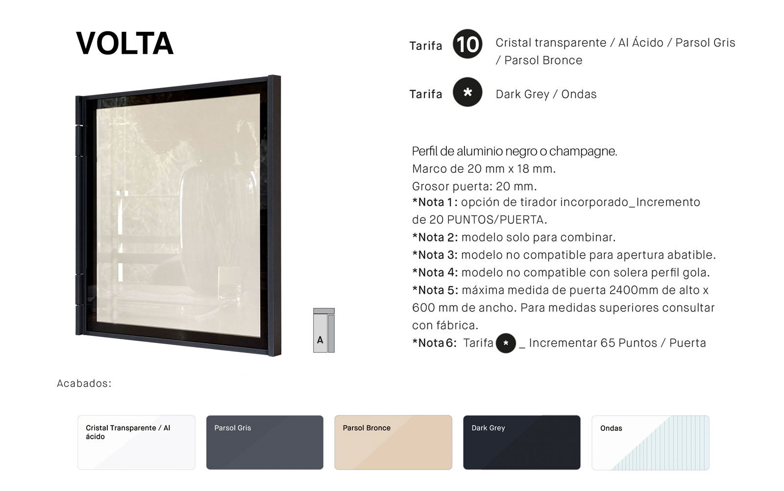 Nuevo CRISTAL ONDAS para las puertas vitrina. Información de tarifas para el nuevo cristal e incremento de Dark Grey.