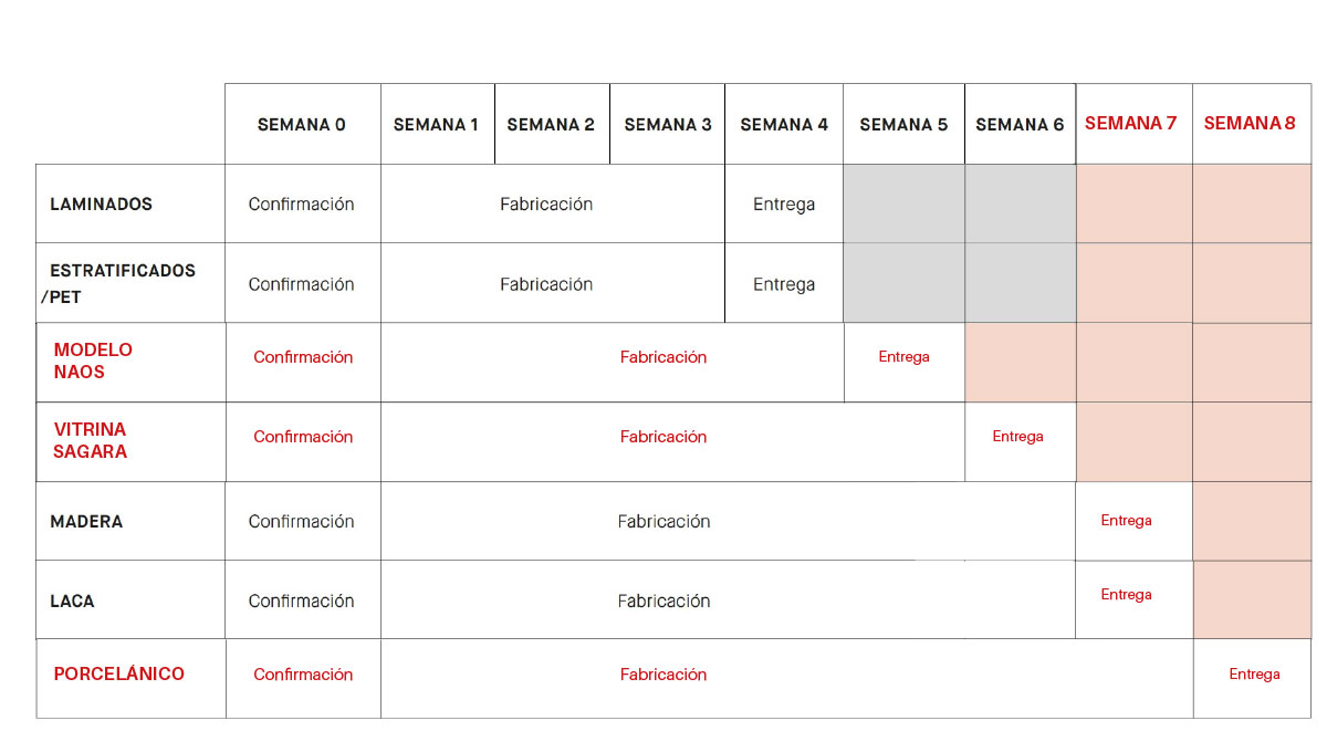 Conoce los PLAZOS DE ENTREGA según tipo de material en la tabla adjunta.