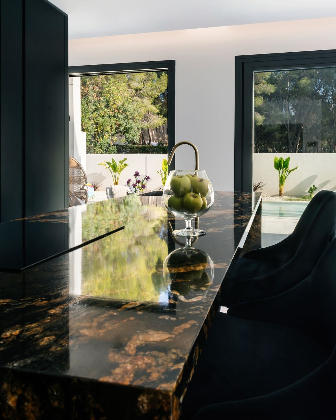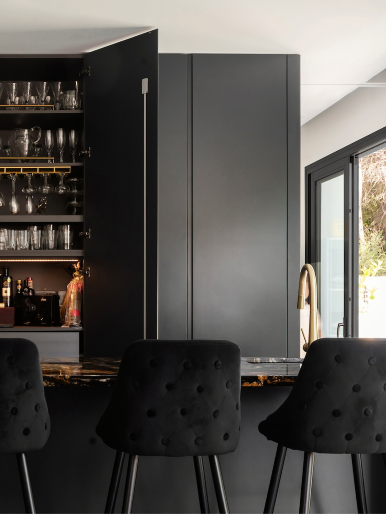 La cocina de Carmina es sinónimo de sofisticación. Con una laca antracita personalizada que aporta profundidad y elegancia, logramos un espacio visualmente potente y cargado de personalidad. Electrodomésticos totalmente integrados y una isla protagonista convierten el diseño en puro disfrute.